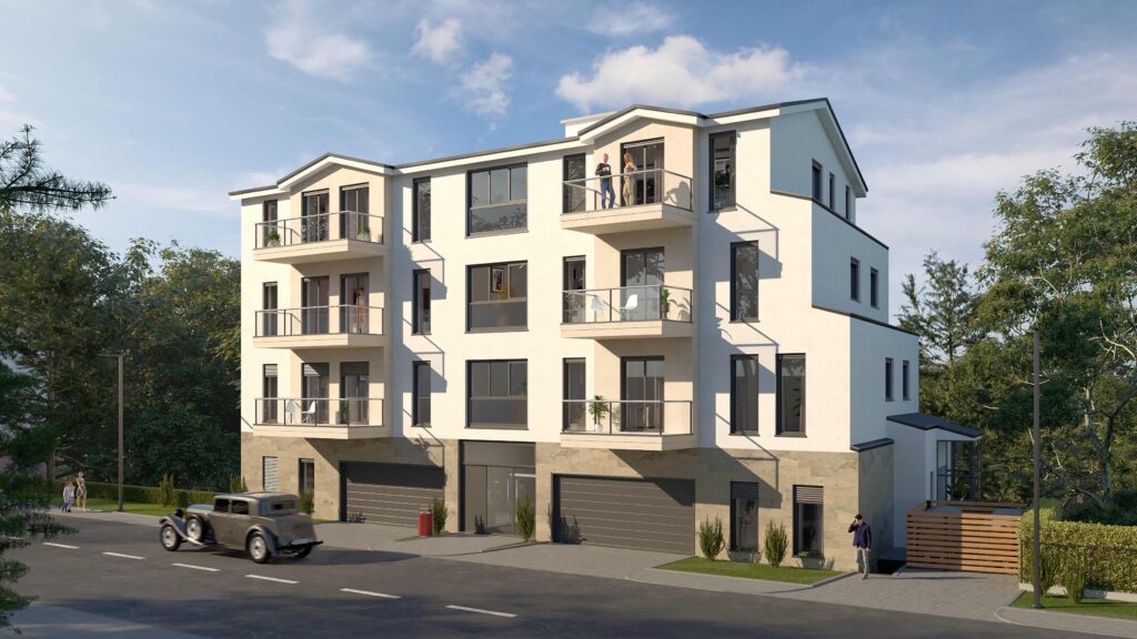 In idyllischer Lage an der Vereinigung der Tal- und Lutherstraße und direkt an der Leutra entsteht ein Wohnhaus für 9 Parteien. Hier haben wir bei der Planung Wert darauf gelegt, die Wohnungen mit Klimadecken auszustatten, die auch im Sommer ein angenehmes Raumklima gewährleisten. Alle Wohnungen haben einen Balkon oder eine Terrasse. Die Wohnungen werden über einen Fahrstuhl erreicht, für die Fahrzeuge gibt es Tiefgaragenplätze. An der Seite zur Leutra kann man über das Treppenhaus direkt auf einen kleinen Spielplatz an der Leutra gelangen.