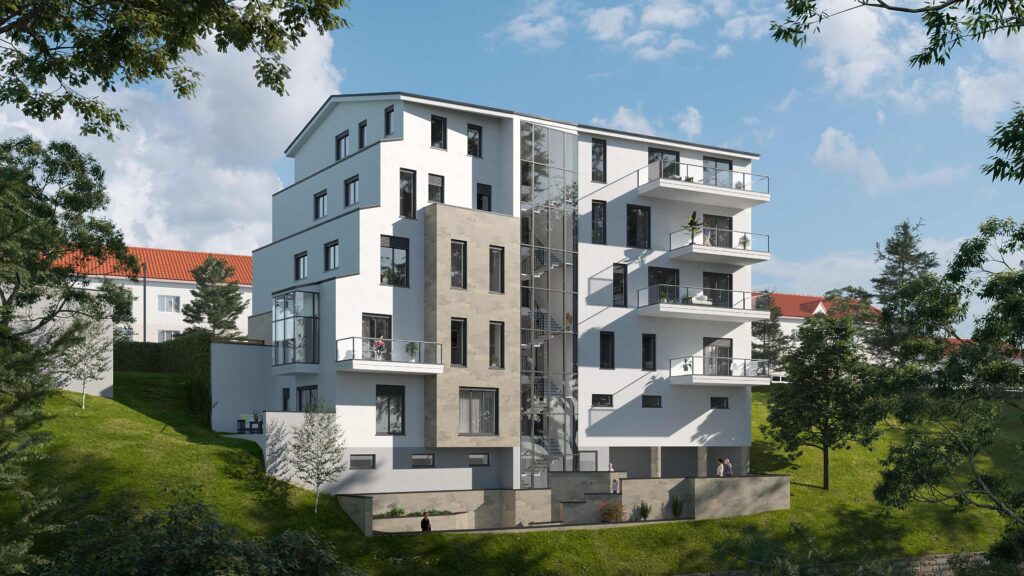 Die Baugenehmigung wurde im Dezember 2022 erteilt, Verkaufsstart war im Februar 2023.